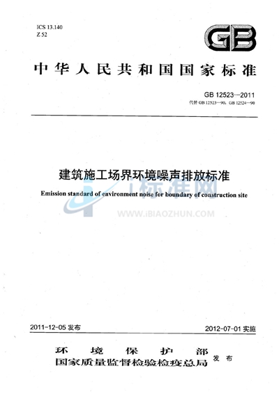 GB 12523-2011 建筑施工场界环境噪声排放标准